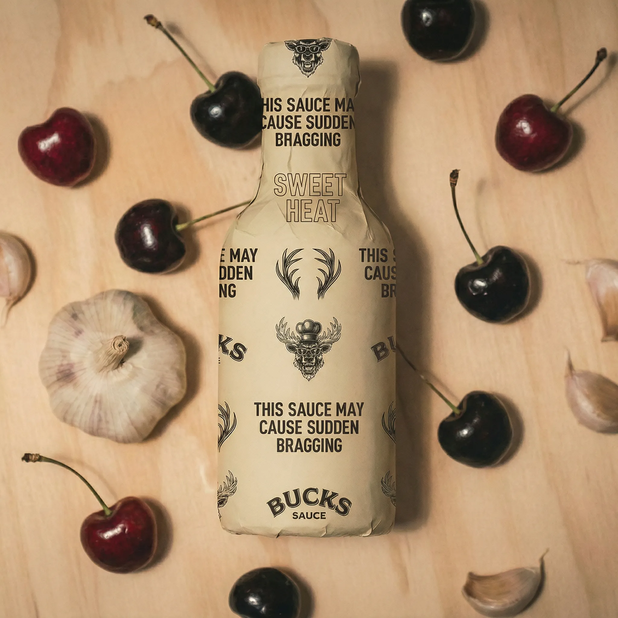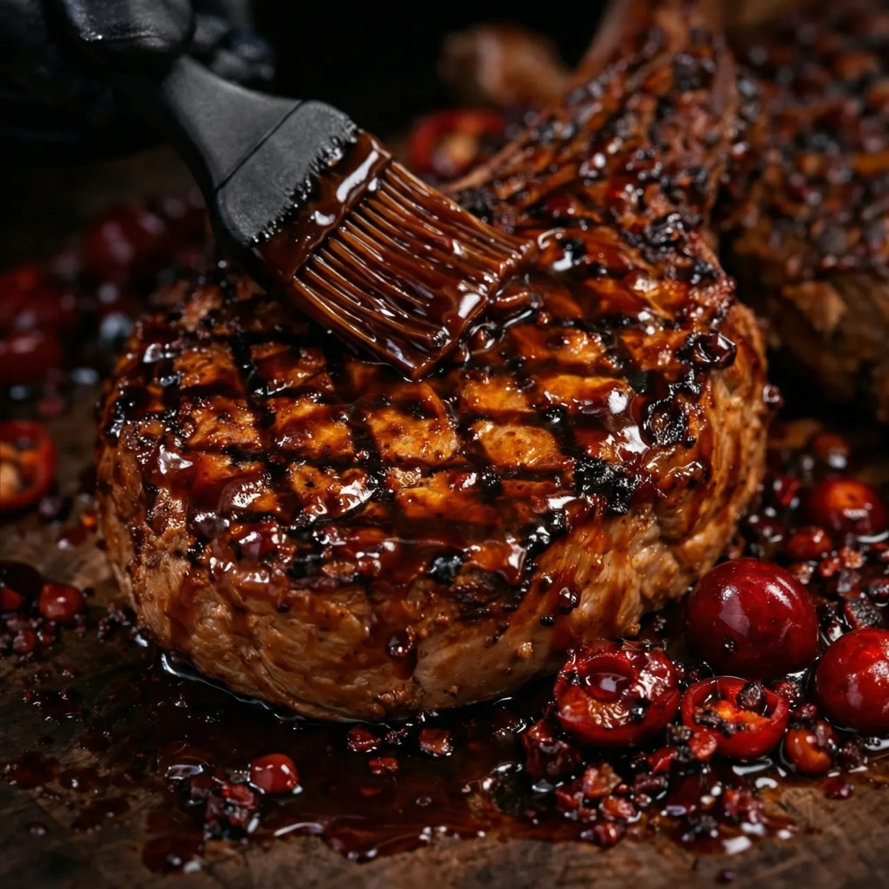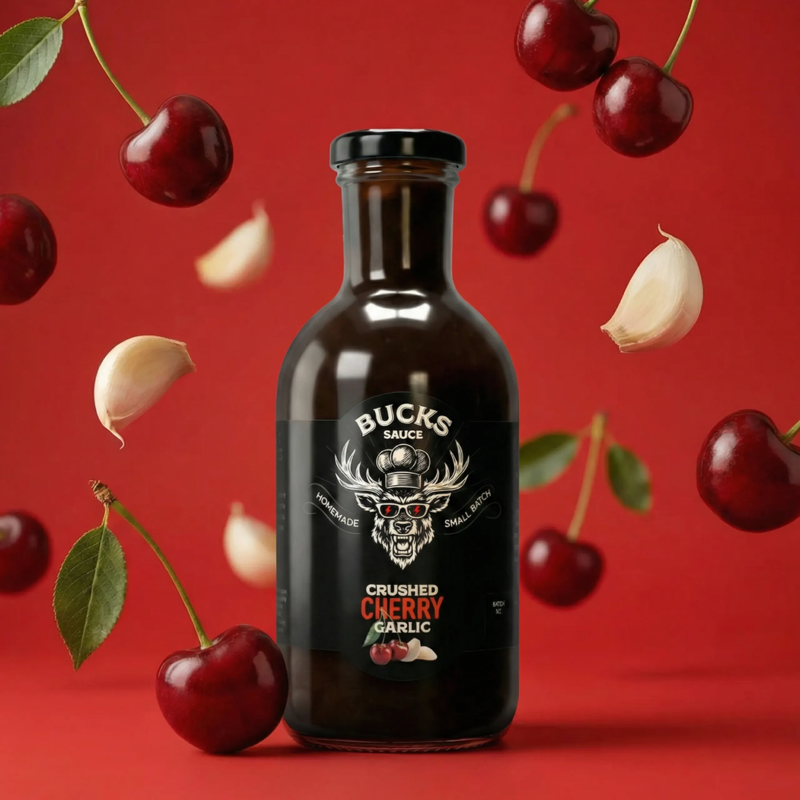 Crushed Cherry Garlic BBQ sauce made with real cherry and a savory garlic backbone — a sweet cherry BBQ sauce with no heat and balanced flavor. Perfect for baby back ribs, pork chops, and grilled chicken. Glazes heavy. Finishes clean.
